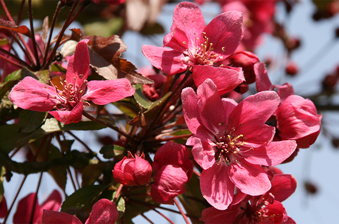 The blossoming of the fruit trees is a sight to behold – for insects, too. Cherry plum (Prunus cerasifera) and sloe (Prunus spinosa) provide plenty of food early on in advance of other fruit trees such as sweet cherry, plum, apple and pear blossom.