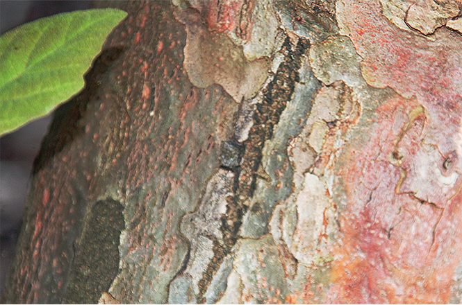 The bark of the Parrotia is also a true natural beauty. It belongs to the so-called scale bark. On older specimens, the top layer of bark peels off in thin plates, creating a multi-coloured mosaic of grey, olive-green and reddish-brown sections.