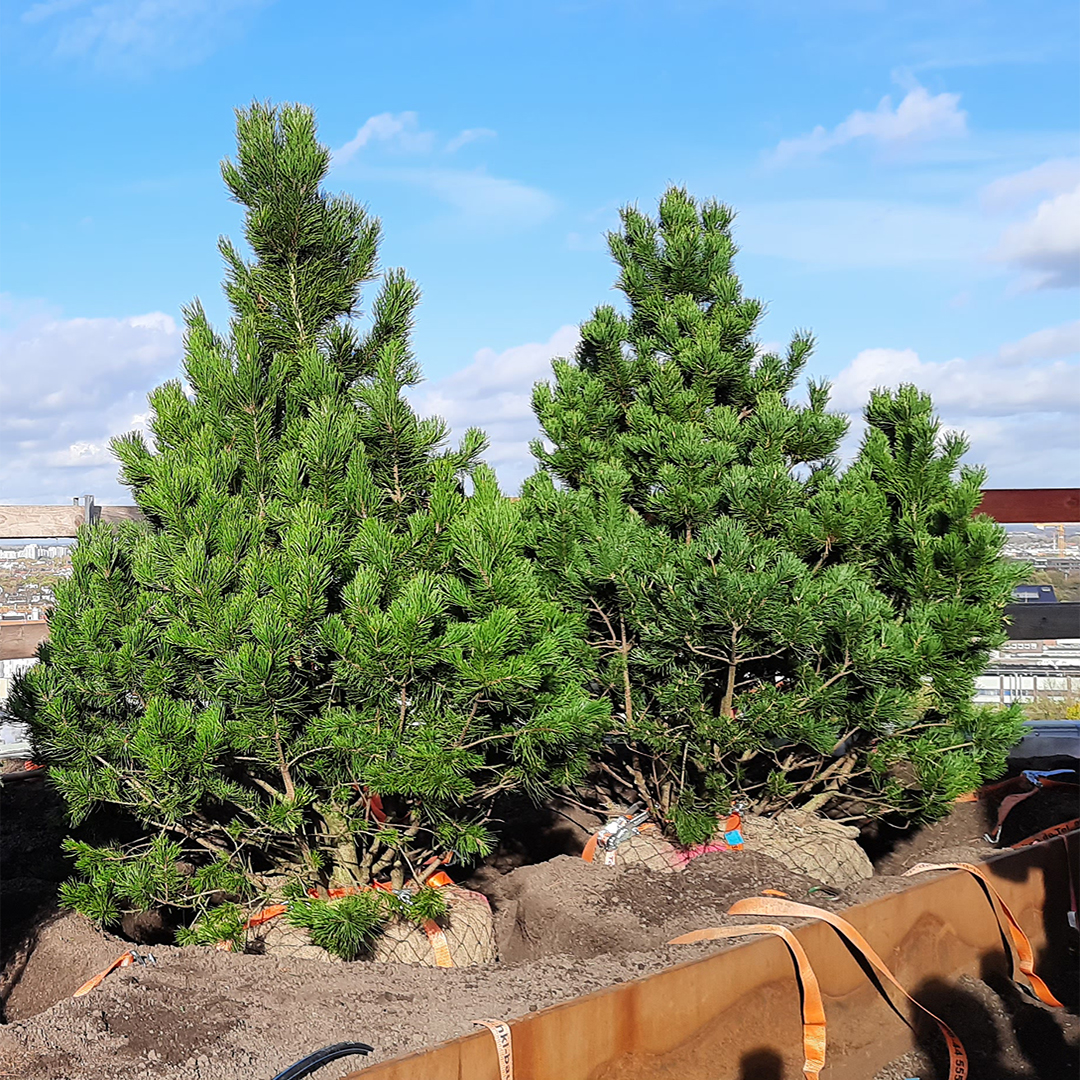 4,700 plants will make the St. Pauli Bunker a spectacular natural oasis. 4700 trees we supply are deciduous trees and conifers: Over the roofs of the Hanseatic city, more than 7,600 square meters of public green and communal areas will be created. A facade area of 1,700 square meters and a 300-meter-long "mountain path" will be greened.