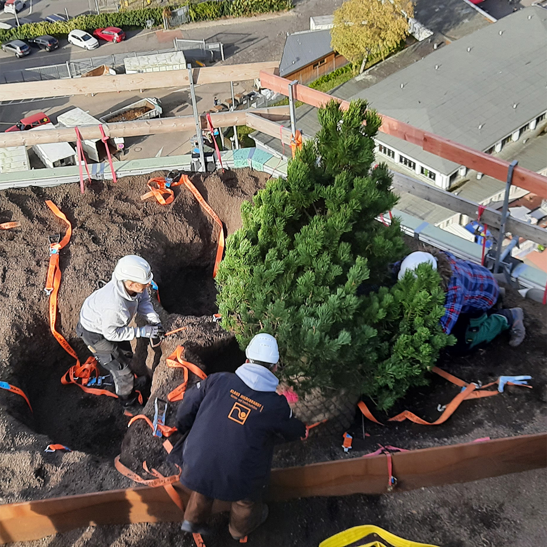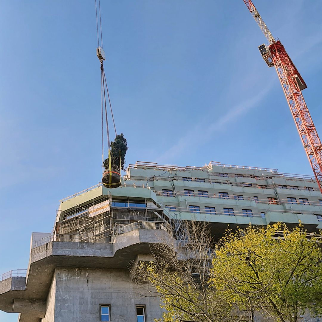 In the coming months, the five new floors will then be greened step by step. All the trades involved are working hard to complete a large part of the planting at the beginning of 2023. An exact date depends, among other things, on the weather in the coming winter months.