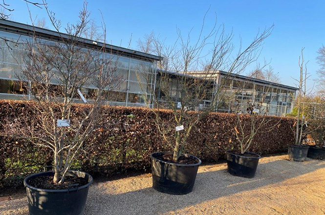 We offer an extensive range for sale – from small, easy-to-handle shrubs to six-metre-high solitary trees, all of the highest quality.