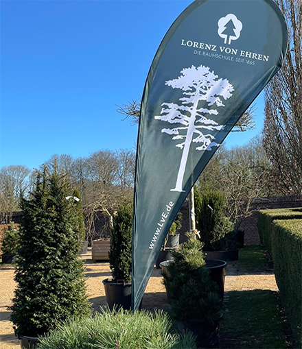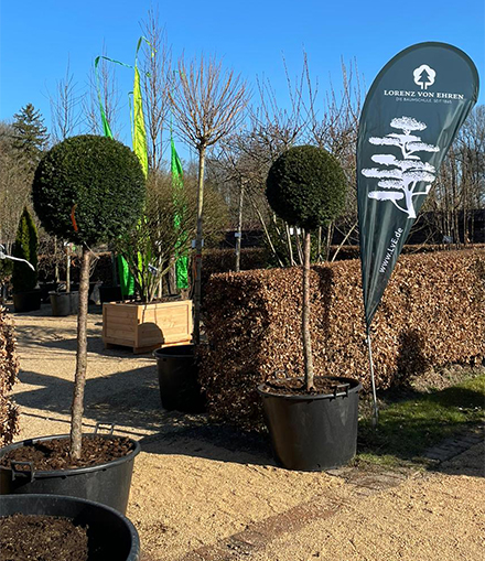 What is new is that the former Hüsch gardens have been redesigned horticulturally into one of the Lorenz von Ehren nursery’s most striking sales locations. On the more than 1000 m2 of retail space, you will find fabulous large trees of up to six meters in height as well as many classic solitary shrubs and current trendsetters, such as umbrella shapes, multi-stem plants, hedge elements, trellis trees, roof shapes, climate trees, large bonsai and much more.