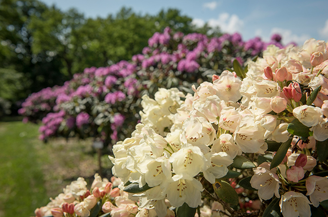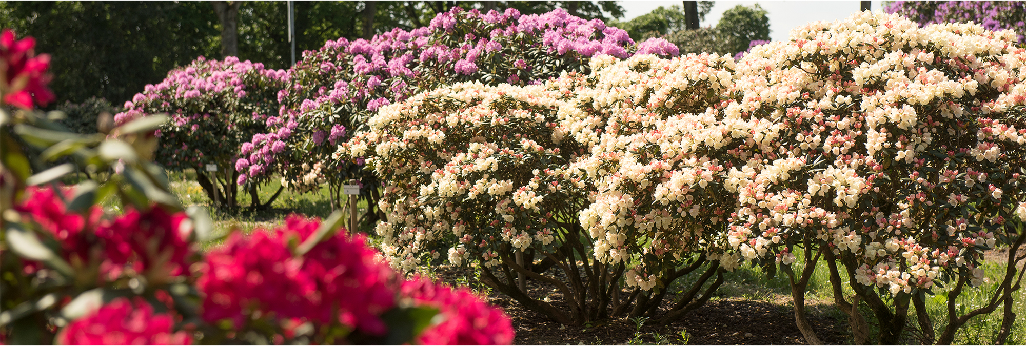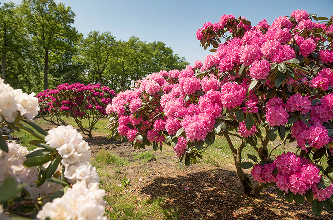 „Rhododendrons are beautiful evergreen shrubs and are available on the market in an incredible variety. Our quarters in Bad Zwischenahn are home to the most beautiful specimens. Come and have a look!“