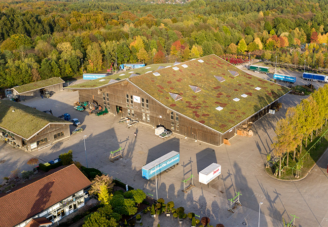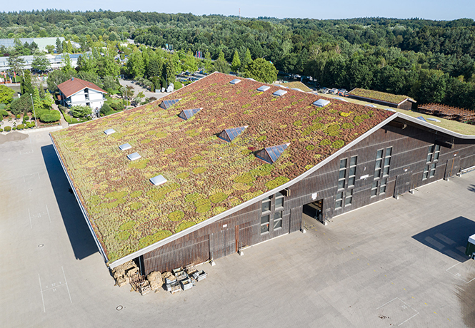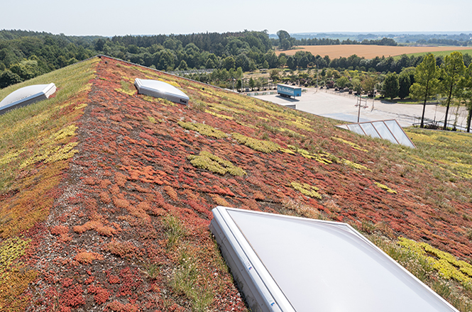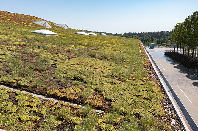 Alle drei Gebäude erhielten im Juni 1994 eine extensive Dachbegrünung auf einer Gesamtfläche von ca. 7000 m². Die Vegetationsmatte auf der Versandhalle ist ca. 5 mm dick. Die artenreiche Mischvegetation setzt sich zusammen aus trockenresistenten und stresskonditionierten Moosen, Dickblattgewächsen (Sedum), Kräutern und Gräsern. Aus der Neigung des Daches ergeben sich dabei unterschiedliche, abwechslungsreiche Lebensräume für Insekten.