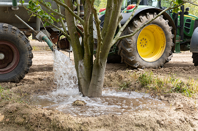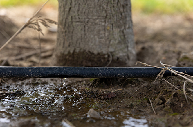 Entsprechend sparsam verwenden wir Wasser und nutzen für die Bewässerung unserer Gehölze eine punktuelle Tröpfchenbewässerung und Gießränder.