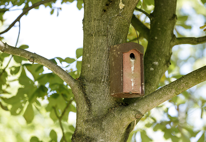 Für den aktiven Vogelschutz bieten wir den Vögeln optimale Lebensbedingungen, u.a. durch das Anbringen von rund 250 Nistkästen. Und auch wir profitieren davon, denn die Tiere helfen uns beim Schutz unserer Gehölze vor Schaderregern.