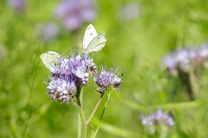 Für die Tier- und Pflanzenwelt bringt Gründüngung unschätzbare Vorteile und ist weithin sichtbar. Die blühenden Bestände sind Bienenweide und Farbbilder auf den Flächen.