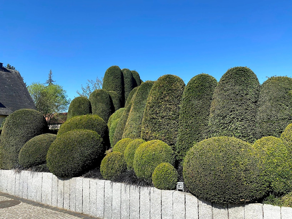 Unsere Schnittmeister nehmen sich Zeit, um eine Kugel zu formen. Nur den den regelmäßigen und häufigen Schnitt werden die LvE-Kugeln so dicht und gleichmäßig. In unserem riesigen Sortiment aus verschiedenen Arten haben die größten Kugeln einen Durchmesser von 280 cm.