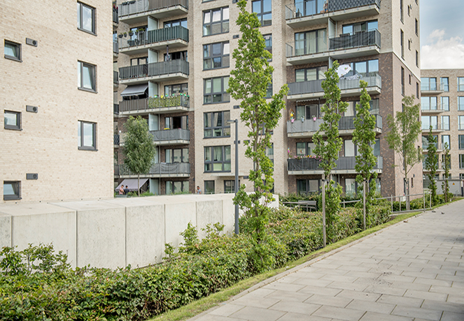 Straße mit Wohnblöcken