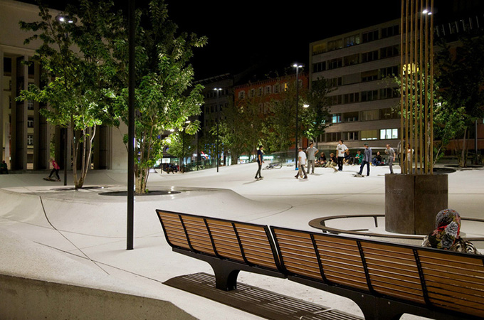 Unter den zahlreichen markanten Bauminseln sind vielfältig nutzbare Freiflächen, Hügel, Brunnen, „Podeste“ für Denkmäler, Sitzgelegenheiten und Sitzbänke verteilt. Verwendete Gehölze: Acer saccharinum - Silber-Ahorn - Seefeld in Tirol: