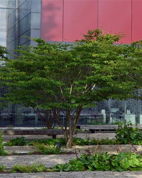 Doch vielfach werden dort mehr Bäume abgeholzt als nachgepflanzt. Dabei könnte es so einfach sein, denn es gibt genug Gehölzarten und -sorten, die unter den komplexen Klimabedingungen der Stadt gedeihen und die helfen! Wir nennen sie "Stadtbäume der Zukunft" oder "Klimabäume".