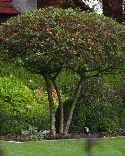 Seit sich natürliche Formen immer größerer Beliebtheit erfreuen, steigt auch die Nachfrage nach mehrstämmigen Bäumen. Ein Mehrstämmer wurde bei der Aufzucht bereits in jungem Alter so geschnitten, dass direkt am Boden mehrere Stämme entstanden sind. Sie besitzen meist einen vasenförmigen Kronenaufbau: unten etwas schmaler und nach oben hin breiter.