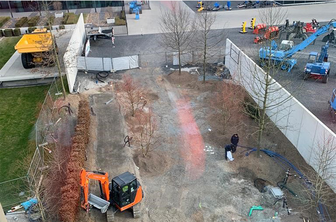 Große Bäume, Heckenelemente, Formgehölze, Alleebäume und auch Unikate, hier wurde an alles gedacht. So stehen zwischen Gebäuden, Wegen und technischen Schauflächen grüne Inseln und Tangenten. Diese grünen Bereiche verbessern das Kleinklima und die Besucher finden Entspannung und können sich im Grünen erholen, besonders in heißen Sommern. Gepflanzt werden dabei insbesondere große Bäume (bis zu 100-120 cm Stammumfang), denn diese beginnen sofort nach der Pflanzung mit ihrer deutlich spürbaren klimapositiven Aktivität: Feinstaub filtern, Umgebungsluft kühlen, CO2 und Oberflächenwasser binden u.v.m.